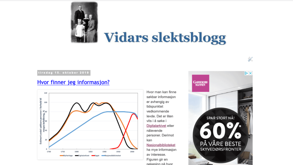 Vidars slektsblogg provides information about genealogy research in Norway. It is written in Norwegian but Google translate is available.